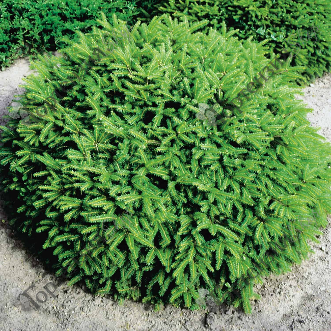 Карликовый сорт с подушковидной формой кроны и углублением в центре, больше напоминающая гнездовую форму. Высота взрослого растения до 1 м, диаметр кроны до 2 м. В 10 лет высота 0,4 м при диаметре кроны 1м. Приплюснутая крона развивается в виде гнезда, благодаря растущим в стороны побегам и отсутствию главных ветвей. Ветви растут равномерно, веерообразно. Побеги многочисленные. Хвоя короткая, темно-зеленая, густая, 7-10 мм длиной. Годовой прирост в высоту 3 - 4 см, в ширину 5-8 см. Не выносит застоя воды. К почве нетребовательна. Предпочитает умеренно богатые питательными веществами, песчано-гумусные почвы, от кислых до щелочных. Не выносит переувлажнения. Ель обыкновенная Нидиформис морозостойка, но в молодом возрасте желательно укрытие от весенних заморозков.