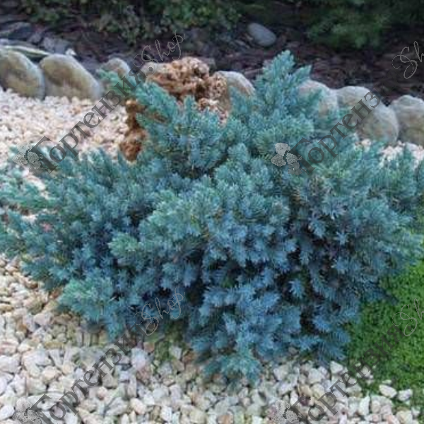 Можжевельник чешуйчатый "Блю Стар" - карликовый кустарник,высотой  0,6 м, диаметр кроны 1-1,5 м. Крона куполообразная широкая и плотная.Небольшие размеры кустарника компенсируются густотой хвои и близким расположением ветвей, они образуют пышную крону. Растет очень медленно, скорость роста не превышает 8 см в год .Хвоя чешуйчатая,игловидная серебристо-голубого цвета. Светолюбив,морозостоек.