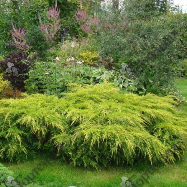 Можжевельник 'Голд Кост' - компактный раскидистый хвойный кустарник с изящной будто позолоченной кроной . Высота растения до 1 м и до 2 м в диаметре. Побеги растут горизонтально. Хвоя чешуйчатая или игловидная, на верхушках побегов золотисто-желтая, зимой становится темнее.  В тени теряет ярую окраску, поэтому рекомендуется высаживать на солнечных местах. Солнцелюбив. Морозостоек.
