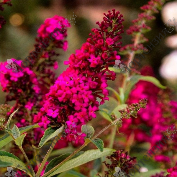 Буддлея Давида (Buddleja davidii) 'Роял Ред' 'Buddleja davidii Royal Red' - раскидистый,декоративный кустарник высотой до 3 м,и диаметром кроны до 3 м.Листья зеленого цвета.Цветки пурпурно-красные, ароматные.Цветение проходит с июля по октябрь. Своим медовым ароматом привлекает насекомых, особенно бабочек. Растёт быстро. Светолюбив.Морозостойкий сорт.