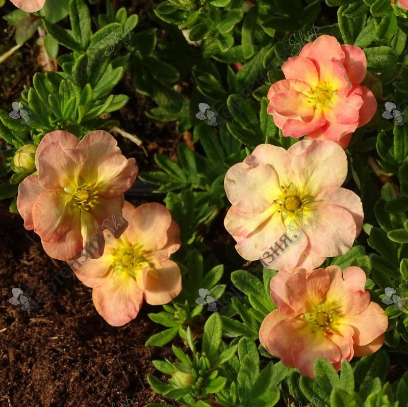Лапчатка кустарниковая (курильский чай) Белла Эппл декоративный цветущий кустарник. Листья мелкие  сложные из 5 лепесточков. Цветы крупные кремово розовые с оранжевым оттенком, цветет с июня по октябрь. К почвам не требователен но не любит вымокания. Устойчива к вредителям и болезням. Прекрасно растет в городских условиях. Морозостойкость -34,4С