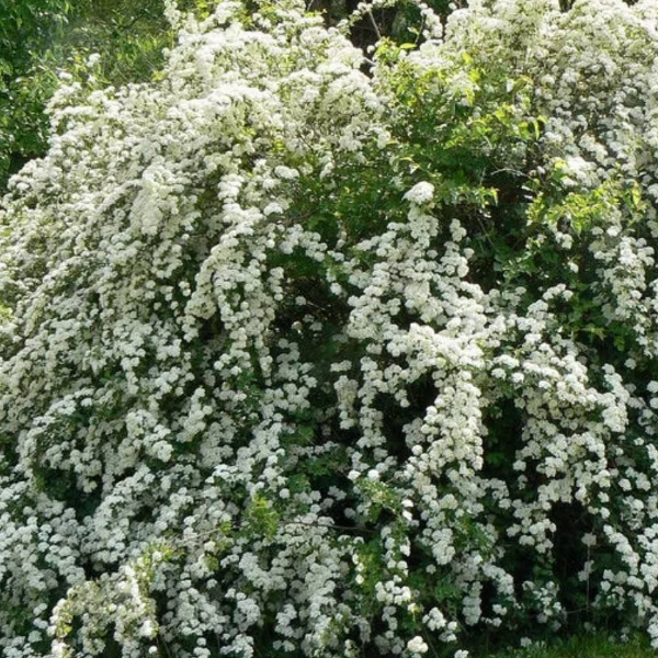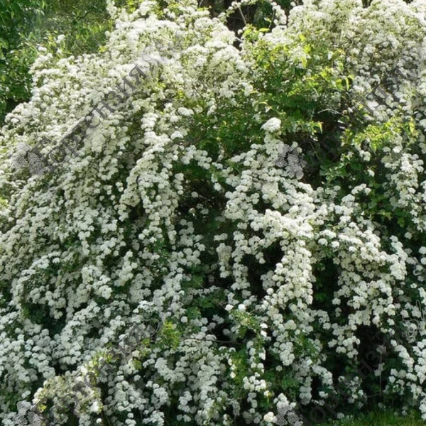 Спирея Вангутта Spiraea x vanhouttei - кустарник с очень красивым и эффектным цветением,высотой до 2 м.Годовой прирост до 20 см в высоту и ширину. Крона  густая, раскидистая, с дугообразно изогнутыми ветвями.Цветки чисто-белые, в зонтиковидных соцветиях 4–5 см диаметром, полностью покрывают ветви и скрывают собой листья. Одна из наиболее декоративных крупных раннецветущих спирей, за обильное цветение иногда называемая «майским снегом» .Светолюбива, выносит слабое затенение.Почва не требовательна.Медонос.Зимостойка.