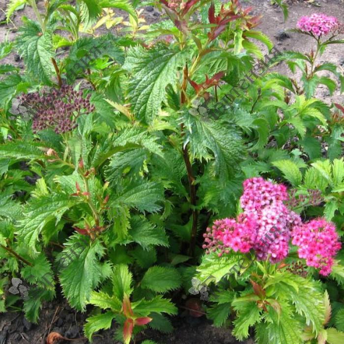 Спирея японская Криспа (Spiraea japonica Crispa) - невысокий кустарник с плотной,раскидистой кроной.Высота куста дорастает до 70 см, при ширине 80 см. Побеги прямостоячие, иногда изогнутые. Листья зубчатые, волнистые, темно-зелёные, осенью краснеют. Цветки - плоские зонтики, розово-лилового цвета. Появляются на концах прошлогодних побегов. Цветёт с июля до сентября. Для более продолжительного цветения рекомендуется удаление отцветших соцветий. Спирея лучше всего цветет на открытых, хорошо освещенных местах. В тени может терять интенсивность окраски листьев и густоту кроны.К почве нетребовательна. Зимостойка.