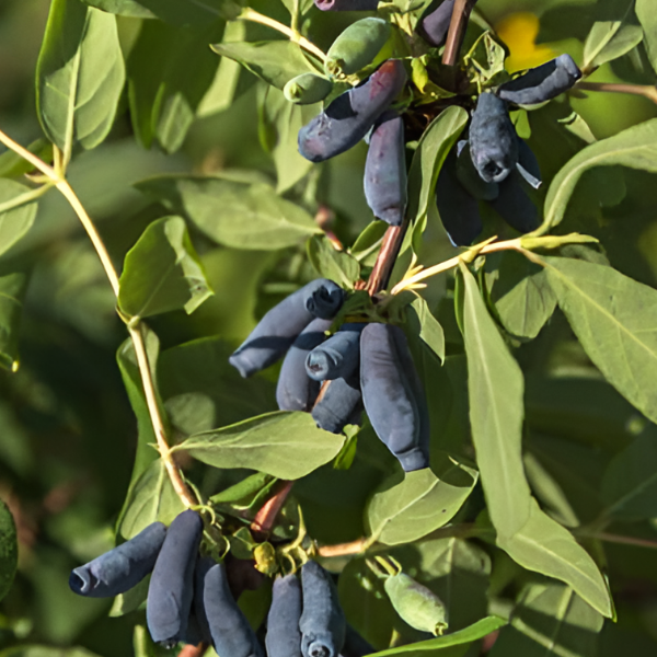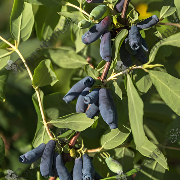 Жимолость «Мальвина» — это классический сорт ленинградской селекции, который ценится за стабильность, десертный вкус и высокую декоративность куста. Высота взрослого куста достигает 1,5 метров. Крона густо облиственная, приземистая. Побеги направлены вверх, у молодых растений светло-салатовые, в более старшем возрасте буреют. Листья крупные, удлиненные, насыщенного зеленого цвета. Ягоды голубовато-синие, с вытянутым основанием и уплотненной верхушкой, имеют приятный кисло-сладкий вкус без горчинки. Плоды не крупные, массой 0,9–1,5 грамма, крепко сидят на ветках и долго не опадают. Сорт хорошо переносит заморозки до -40° C, а во время цветения выдерживает понижение температуры до -6… -8° C. Первые ягоды появляются в конце июня, в северных регионах плодоношение запаздывает на 3–5 дней. Мальвина отличается хорошей продуктивностью, урожайность до 3 кг с куста. Сорт самобесплоден. Лучшими партнерами для «Мальвины» являются сорта той же павловской селекции: Морена (считается лучшей  для перекрестного опыления); Голубое веретено; Синяя птица; Старт.