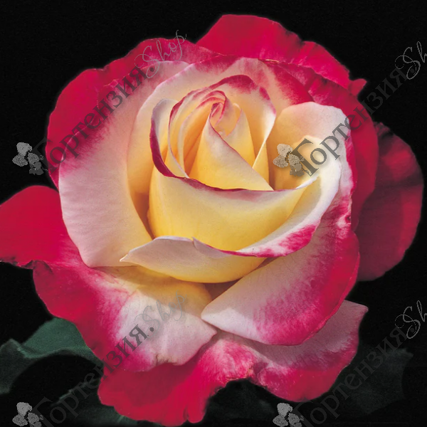 Роза чайно-гибридная 'Double Delight' (Rose Hybrid Tea 'Double Delight') – одна из самых хорошо известных и широко распространенных современных роз в мире. Раскрывающийся бутон идеальной классической формы, медленно распускается. Долго стоит в срезке. Цветки вначале кремово-белые, с красным только на внешних лепестках, но по мере распускания малиновая окраска расширяется, особенно в жаркую погоду. Результат – потрясающий контраст слоев ярко-малиновых внешних лепестков и кремово-белого центра. Цветки очень крупные, появляются обычно по одному, редко по 2-3, на длинных, жестких, колючих побегах. Листва крупная, темно-зеленая, куст прямостоячий, но более ветвистый, и имеет лучшую форму куста, чем большинство чайно-гибридных роз. Сорт очень легок в выращивании, хотя и не исключено появление черной пятнистости или мучнистой росы.  Аромат очень сильный, сладкий, фруктовый. Цветки крупные, с высоким центром, махровые, около 12 см в диаметре.