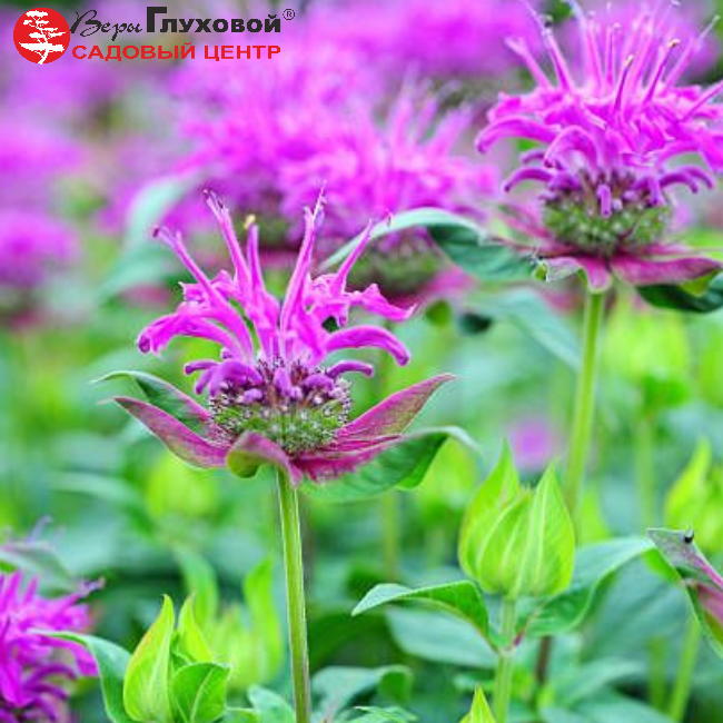 Монарда 'Скорпион' корневищное многолетнее растение. Высота 120 см, листья пальчато-рассечённые,зеленые. Цветки двухцветные, сиренево-розовые, собраны в колосовидные соцветия, цветут с июня по август. Морозостойкость -34С. Почвы предпочитает дренированные, кислые. Используется в миксбордерах, групповых  посадках,  в альпийских горках, бордюрной посадке и на срезку.