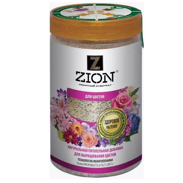 Удобрение Цион Для цветов - питательный ионный субстрат, выделяет питательные элементы по запросу растения, обеспечивая оптимальные условия для его роста и развития, способствует адаптации рассады, а также раннему и длительному цветению садовых и комнатных цветов. Применяется для посадки и подкормки всех видов цветущих растений: пионов, лилий, клематисов, роз, тюльпанов, гортензий, петуний. Предотвращает вымывание минеральных веществ, внесенных в почву. Позволяет на длительный период обходиться без внесения минеральных удобрений. ЦИОН содержит полный набор микро и макроэлементов, необходимых для гармоничного роста растений. Рекомендуется прямой контакт с корневой системой. Передозировка и корневой ожог невозможны. Не является минеральным удобрением, не содержит нитратов, гормонов, пестицидов, гербицидов и ускорителей роста. Обеспечивает формирование сильной корневой системы, эффективную подготовку растения к зимнему периоду и полноценное развитие растения после него.