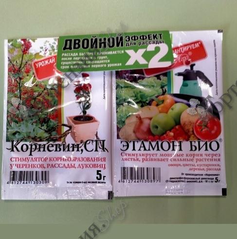 Корневин для рассады: Базовый раствор расходуется в пропорции 2 ст. л. на 1 растение. Обработка двукратная – спустя неделю после пикирования саженца и за 3-4 дня до высадки в открытый грунт.