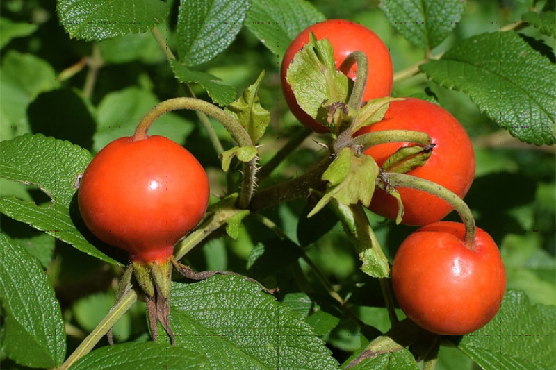 В конце лета и осенью ветви украшают не только цветки, но и плоды. Ярко-красные или темно-оранжевые, они эффектно выделяются на фоне зеленой густой листвы. Масса плодов колеблется от 7 до 10 г, диаметр достигает 34 мм, длина – 24 мм. С одного куста можно собрать урожай от 2-5 до 3-6 кг. Если плоды очистить от семян и волосков, то можно приготовить из них ароматное, витаминное варенье, повидло, джем или компот. Цветки также не только декоративны, но и целебны. Из сушеных лепестков можно заваривать полезный душистый чай, а настой использовать в косметологии.